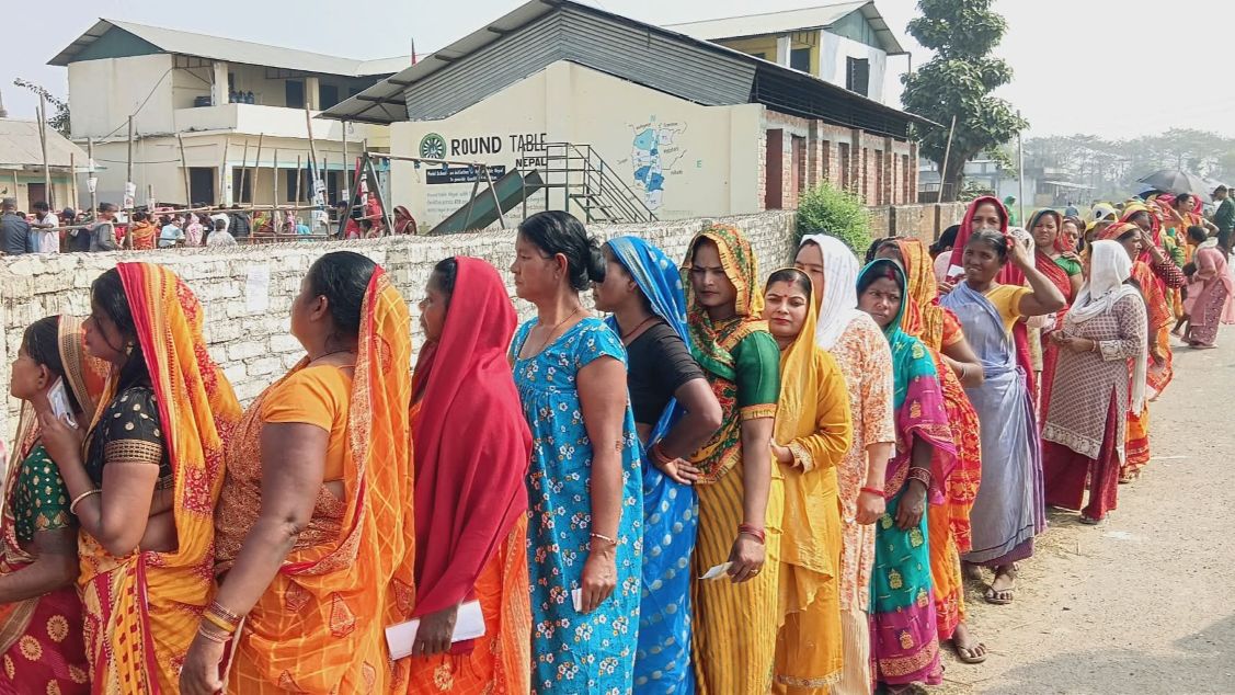 विराटनगर । मोरङ जिल्लाका ६ वटै निर्वाचन क्षेत्रमा मतदान शान्तिपूर्ण रुपमा भइरहेको छ । मोरङका प्रमुख जिल्ला अधिकारी युवराज कट्टेलका अनुसार विहान साढे ९ बजेसम्म जिल्लाका सवै निर्वाचन क्षेत्रमा १२ प्रतिशत मत खसिसकेको छ । मोरङमा ६ वटै निर्वाचन क्षेत्रमा ७ लाख ८३ हजार ५० मतदाता छन् । जसमध्ये ९८ हजार ७०० मत खसिसकेको प्रजिअ कट्टेलले बताए । यो मत १२ प्रतिशतभन्दा बढी हो । उनले जिल्लाका सवै ८८८ मतदान केन्द्रमा मतदान भइरहेको बताए ।