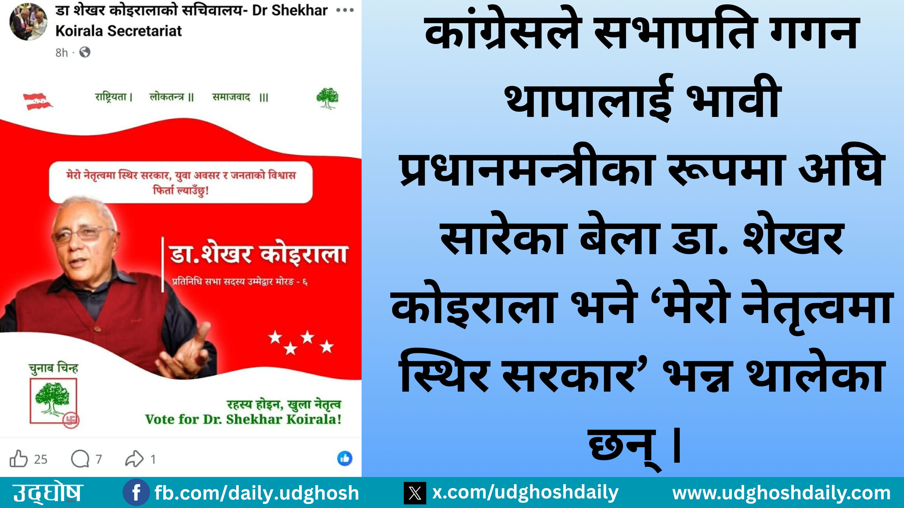 विराटनगर । नेकपा एमालेका सचिव भानुभक्त ढकाल मंगलबार बिहान विराटनगरका पत्रकारहरूमाझ आत्मविश्वासी अन्दाजमा पेश हुँदै थिए । त्यसक्रममा उनले एमाले आउँदो चुनावमा सबैभन्दा ठूलो शक्तिका रूपमा उदाउने दाबी मात्रै गरेनन्, बालेन शाहलाई झापा ५ मा उठाएर उनीविरूद्ध षड्यन्त्र गरिएको पनि बताए । त्यहीक्रममा उनीतिर प्रश्न तेर्सियो ‘एमाले यति बलियो अवस्थामा भए तपाईं चाहिँ किन मोरङ ३ छाडेर तेह्रथुमतिर लाग्नुभएको त ?’ यसअघिका दुईटा चुनाव मोरङ...