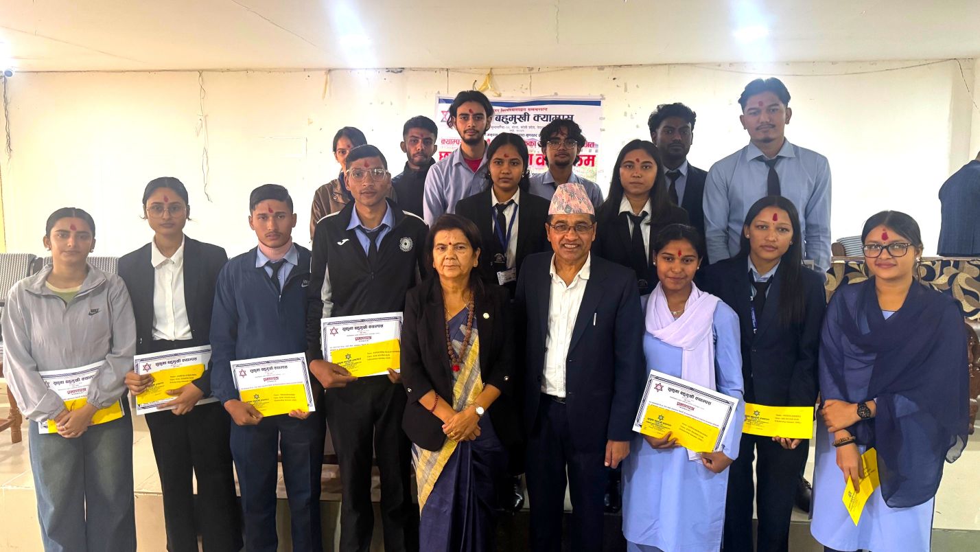 विराटनगर । विराटनगरस्थित अरनिको कलेजले आयोजना गरेको वक्तृत्वकला प्रतियोगितामा कक्षा १२ की छात्रा स्मृति आचार्य प्रथम भएकी छन् । ‘सपना र संघर्षको संगम ः जेनजी युवाको पहिचान’ विषयमा आयोजित प्रतियोगितामा उत्कृष्ट विचार प्रस्तुत गरेर उनी प्रथम भएकी हुन् । त्यस्तै प्रतियोगितामा समीक्षा पौडेल द्वितीय हुँदा आचल यादवले तृतीय स्थान प्राप्त गरिन् । विद्यार्थीभित्र रहेको प्रतिभा प्रस्फुटन गराउने उद्देश्यले समसामयिक विषयमा केन्द...