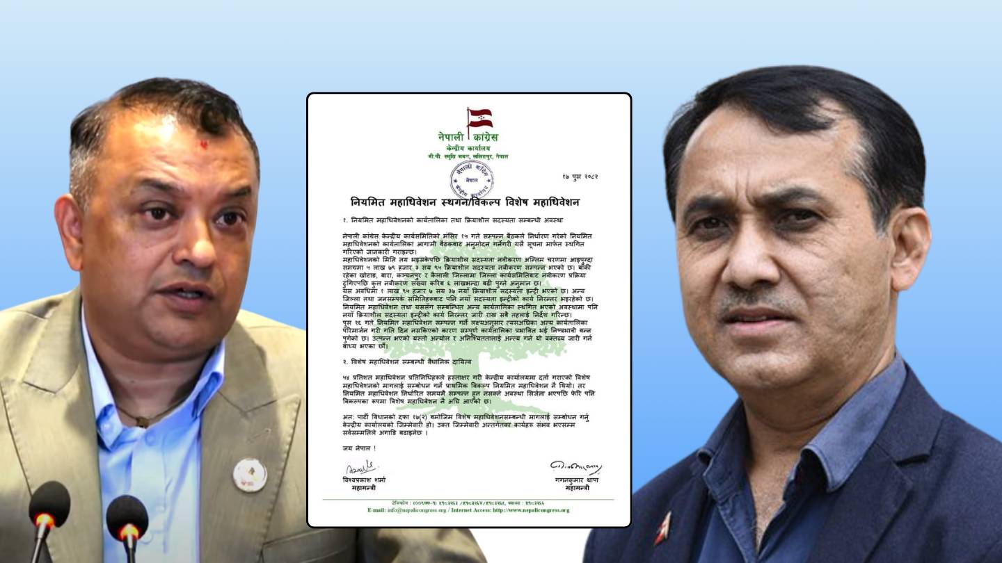 विराटनगर । नेपाली कांग्रेसमा लामो समयदेखि संस्थापनइतर पक्षको नेतृत्व गर्दै आएका नेता डा. शेखर कोइराला अन्ततः निर्णायक घडीमा संस्थापन समूहतिरै उभिएका छन् । पुसभित्रै नियमित महाधिवेशन नभए विशेष महाधिवेशन अनिवार्य हुन्छ भन्दै आएका कोइराला आफ्नै पूर्व अडान विपरित संस्थापन पक्षको निर्णयमा साथ दिने ठाउँमा पुगेका हुन् । जेनजी आन्दोलनपछि कांग्रेसमा रूपान्तरण र परिवर्तनको मुद्दा बलशाली रूपमा उठिरहँदा कोइरालाले भने सभापति शेरबहादुर देउवालाई साथ दिएका छन...